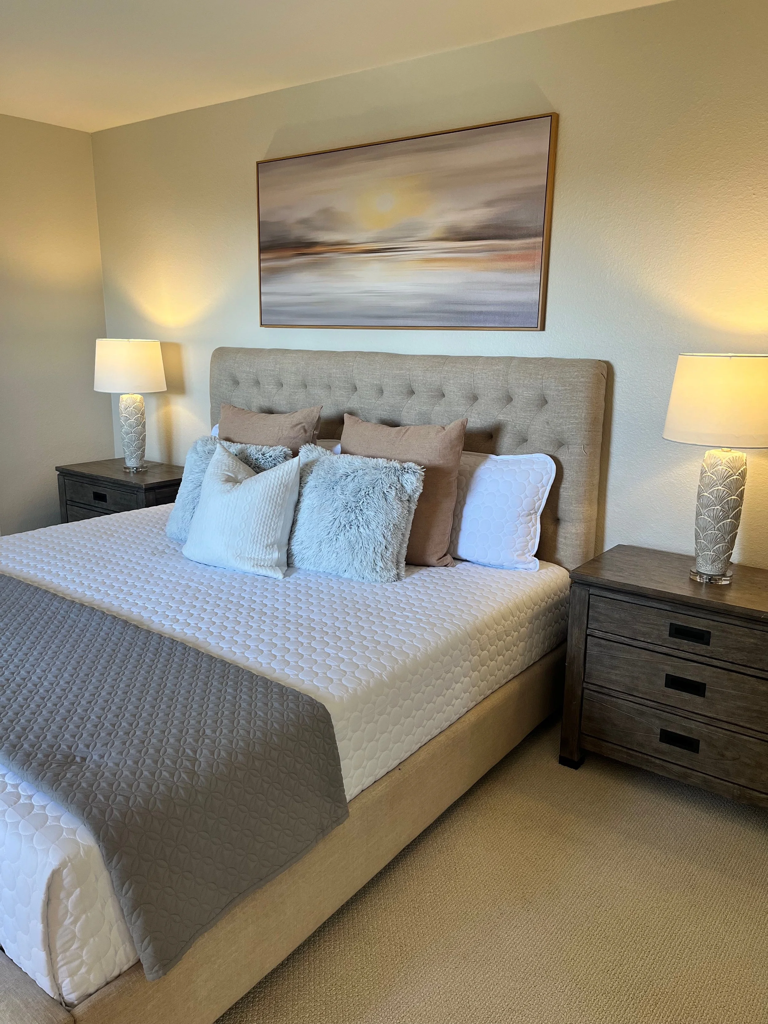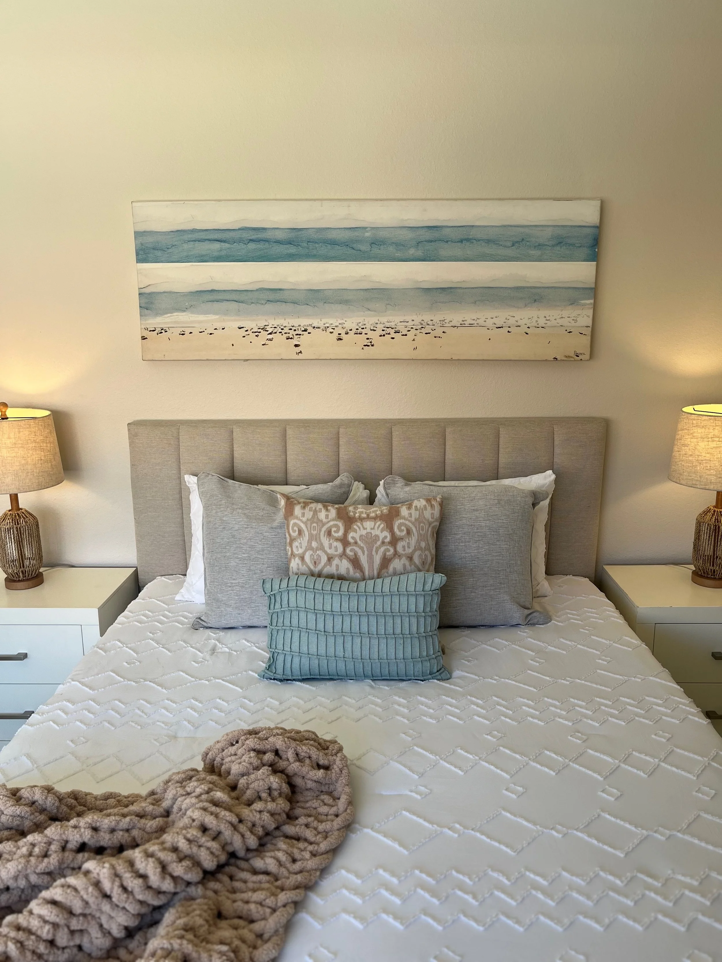 This Carlsbad condo was staged to reflect the easygoing, sun-soaked lifestyle the area is known for. We incorporated and clean-lined furniture to create a tranquil, welcoming space that feels both modern and coastal. From the breezy bedrooms to the serene kitchen accents, every detail was designed to resonate with Carlsbad buyers seeking a move-in-ready retreat and what a cute retreat it was!